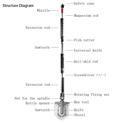 Víceúčelová skládací lopata 23 v 1