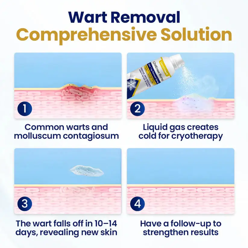 Jedna krabička DermChiller® ChillErase Bump & Skin Tag Renewal Spray nahrazuje potřebu více produktů pro korekci povrchu. Jeho pokročilé chladivé složení rychle zjemňuje texturu a zklidňuje podráždění – dodává pleti hlubokou a trvalou čistotu, kterou běžné krémy a náplasti prostě nedosáhnou.