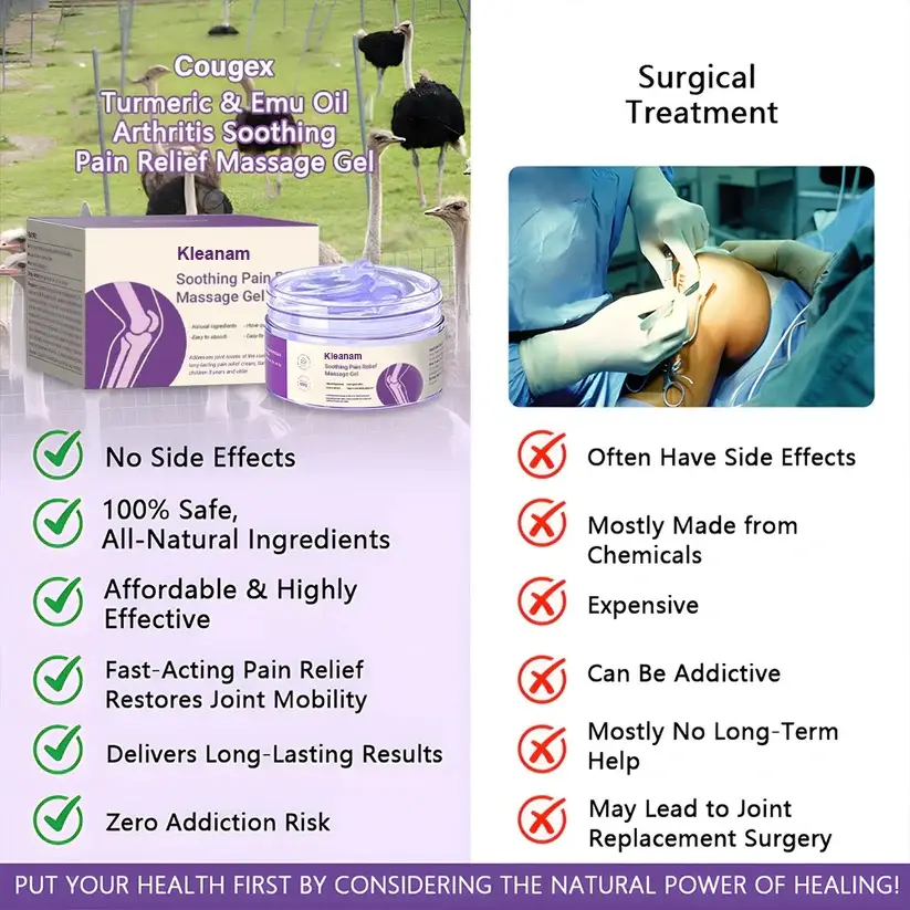 Vraťte se k bezbolestnému pohybu s kurkumou Kleanam™ & Emu Oil Masážní gel pro úlevu od bolesti při artritidě!