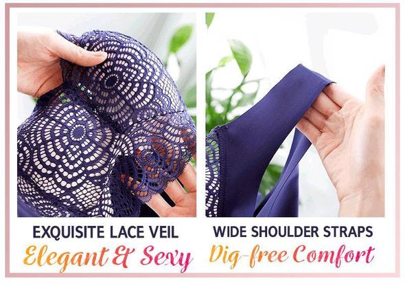 Sexy bezdrátová zvedací podprsenka s krajkovým výřezem